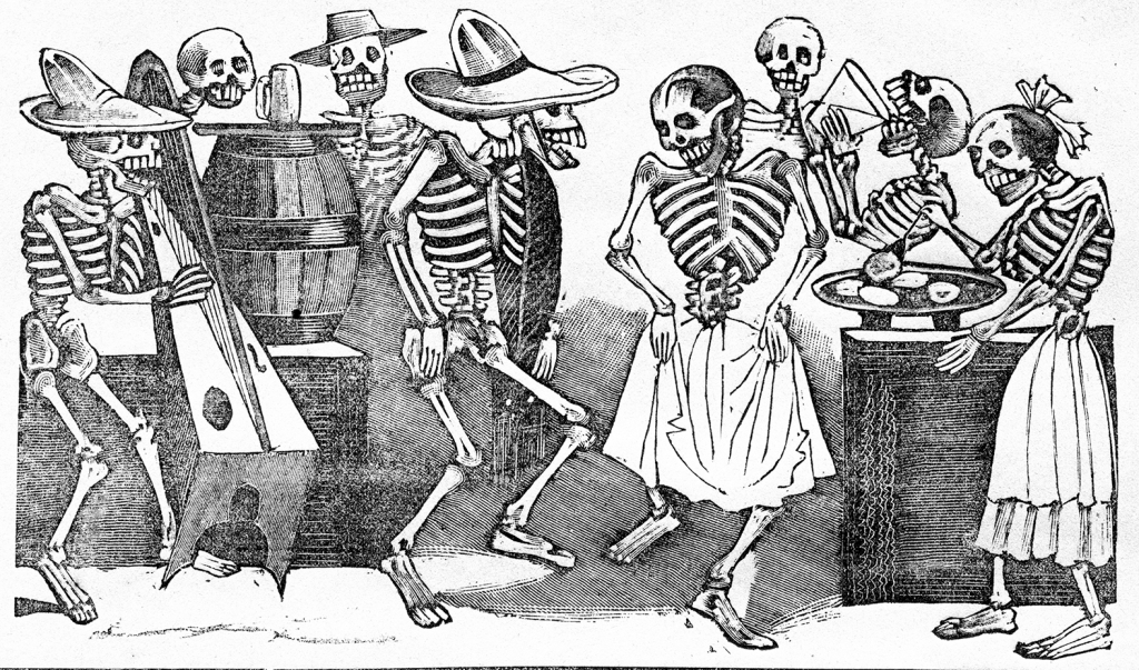 Desde el siglo XVI la fiesta se convirtió en uno de los principales medios de control para obtener el orden y la estabilidad, mientras que desde el ámbito popular se vivió como una forma de romper con el orden en un espacio de libertad capaz de estimular todos los sentidos con una gama de colores, formas, sonidos y olores. En el XIX, con la influencia de las ideas del liberalismo, los festejos públicos de eventos religiosos en la pintura comenzaron a alterarse y las representaciones de algunas fiestas indígenas —mitotes y danzas— se comenzaron a incluir, como en los grabados de José Guadalupe Posada Gran Fandango y Francachela de todas las calaveras, en los cuales la comida, el alcohol, la música tradicional y el baile ocupan un lugar importante en esta crónica visual.