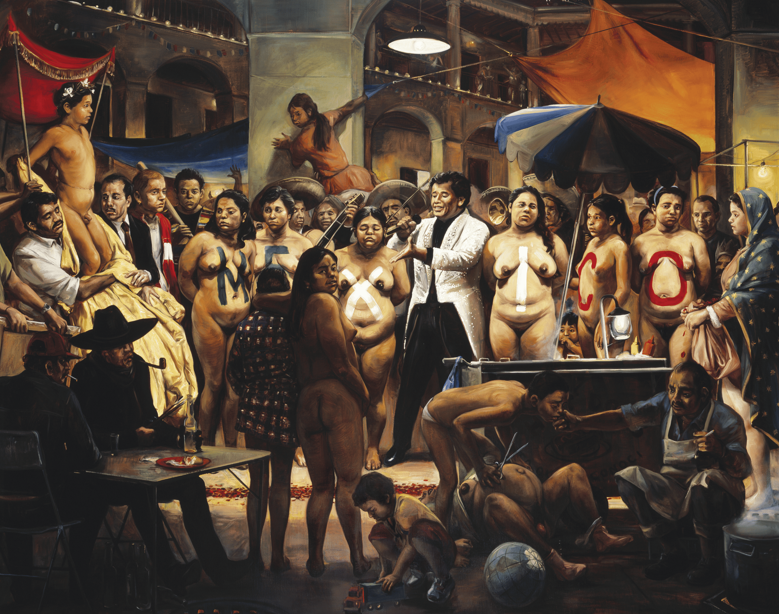 Es el caso de La gran noche mexicana (2005) del pintor Daniel Lezama, cuadro figurativo de gran formato que replantea con­ceptos como festejo, ritual y algarabía a partir de elementos de la cultura popular mexicana en un contexto urbano y globalizado.