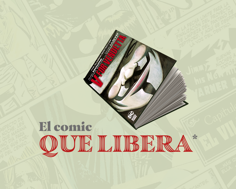 Este autor inglés es fundamental para el género. Podrán tam­bién venirse a la mente los nombres de Will Eisner, Milo Manara, Robert Crumb, Art Spiegelman o un mangaka como Osamu Tezuka, pero en Moore la crítica es esencial tanto para comprender su obra como el cómic mismo. De entre sus títulos —Watchmen, From Hell, Jerusalem, en otros—, V for Vendetta destaca por ser una historia en que la política corta de forma transversal la vida de las personas. Publicada por completo en 1990, la acción inicia el 5 de noviembre de 1997. Después de una guerra nuclear, acaecida una década antes, Gran Bretaña padece un régimen fascista que ha exterminado a la población de origen africano y asiático, así como a homosexuales y otros grupos discriminados.